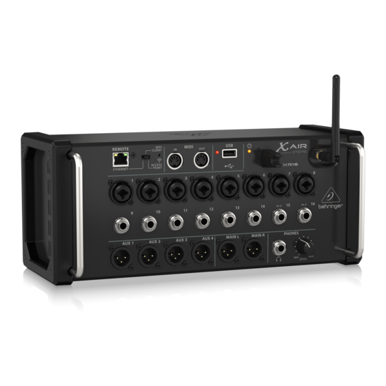 La Behringer X-AIR XR16 est une table de mixage numérique pilotable à distance depuis tablette, smartphone ou ordinateur. Avec ses 16 entrées, dont 8 préamplis micro MIDAS, elle offre un son précis et de nombreuses possibilités de routing.